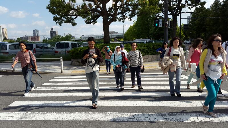 Buat kita yang sering nyeberang jalan di Jakarta, tentu sedikit takut dan ketar-ketir saat mau menyeberang. Selain harus tengok kanan-kiri untuk memastikan tidak ada kendaraan yang lewat, juga untuk memastikan kita tidak menjadi korban dari pengendara yang tidak bertanggung jawab. Tidak begitu dengan di Jepang. Jalur pedestrian dibuat bersahabat, pejalan kaki dan pesepeda begitu dihargai, bahkan harus dilindungi. Untuk menyeberang jalan kita tidak perlu ketakutan, karena hampir setiap beberapa puluh meter ada zebra cross tempat menyeberang. Berita baiknya adalah, zebra cross nya tidak hanya difungsikan sebagai pajangan seperti di Indonesia, tetapi juga benar-benar difungsikan.