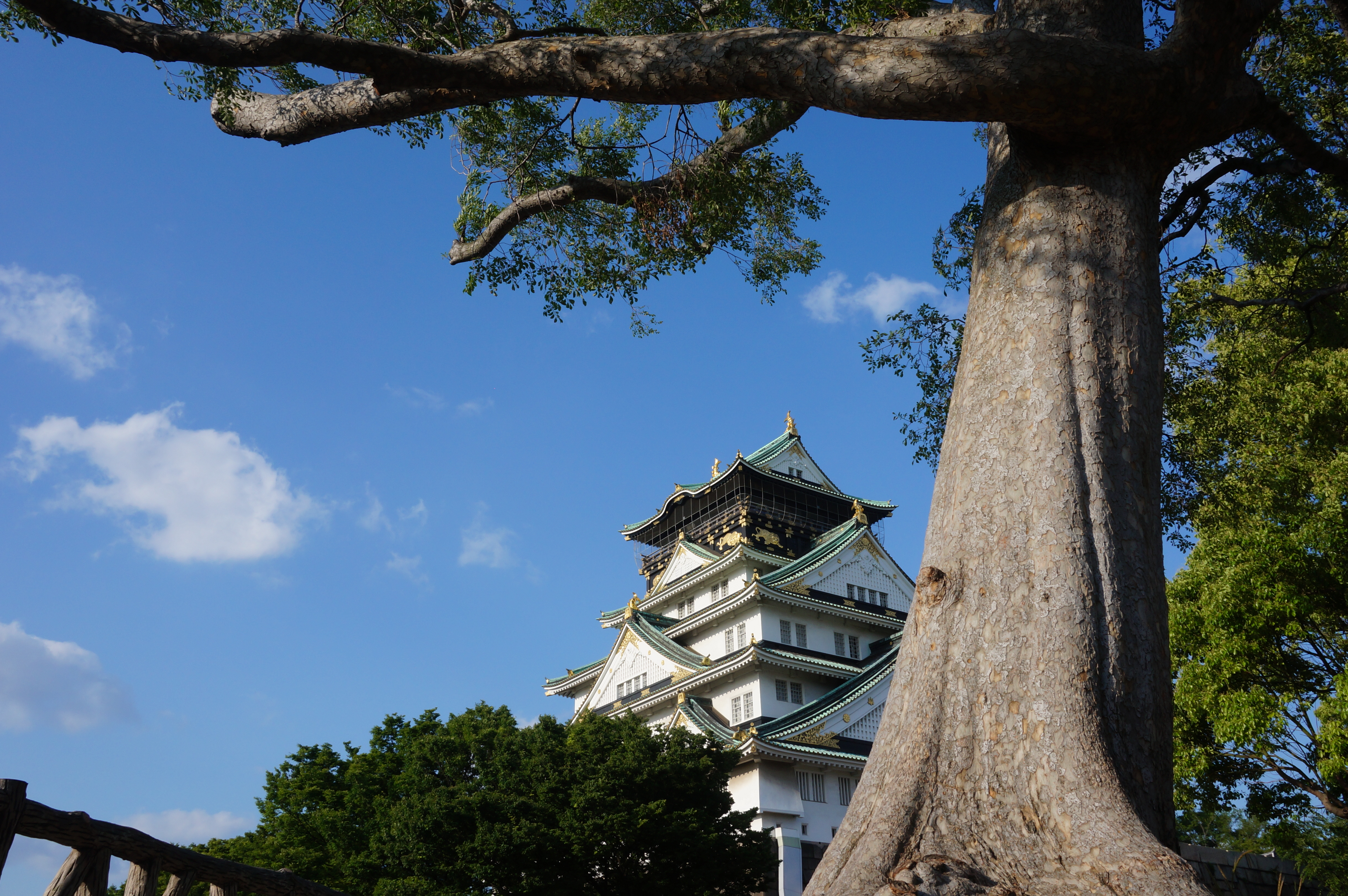osaka castle dijaga oleh pohon-pohon yang besar dan tinggi