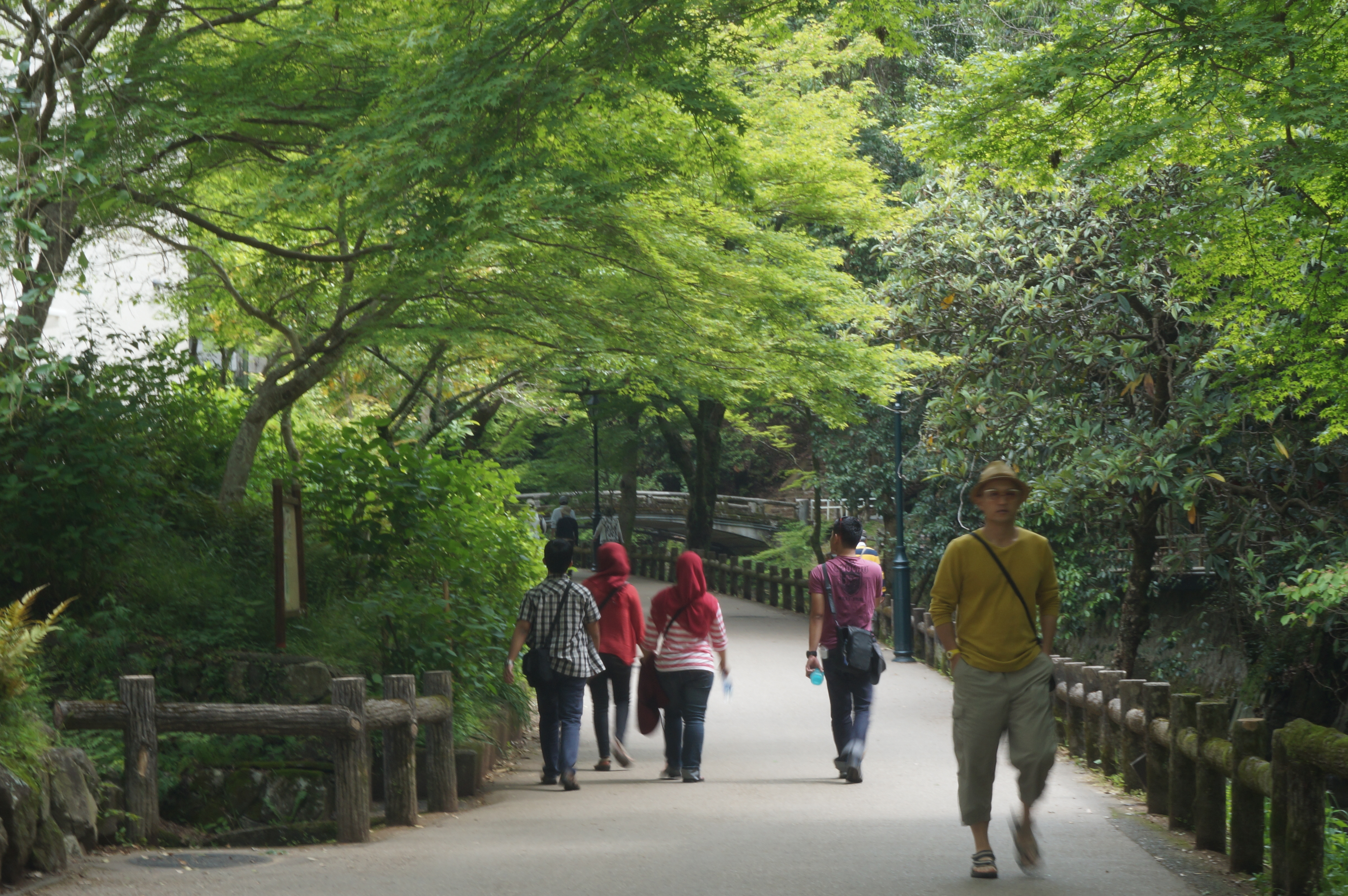 Jangan bayangkan Mino (ada juga yang menuliskan Minoh) sebagai taman. Mino Park merupakan satu kawasan (semacam hutan lindung) dengan track pedestrian yang jauh dan panjang (sekitar 4-5 km), menanjak, dimana banyak orang (kebanyakan kakek-nenek) berolah raga. Sepanjang jalan merupakan kawasan hutan, sungai mengalir sepanjang track tersebut dengan toko makanan dan souvenir berjejer di sepanjang jalan. Pada ujung track dapat kita temui sebuah air terjun (yang sebenarnya biasa saja, namun dikelola dengan baik, rapi, dan bersih)
