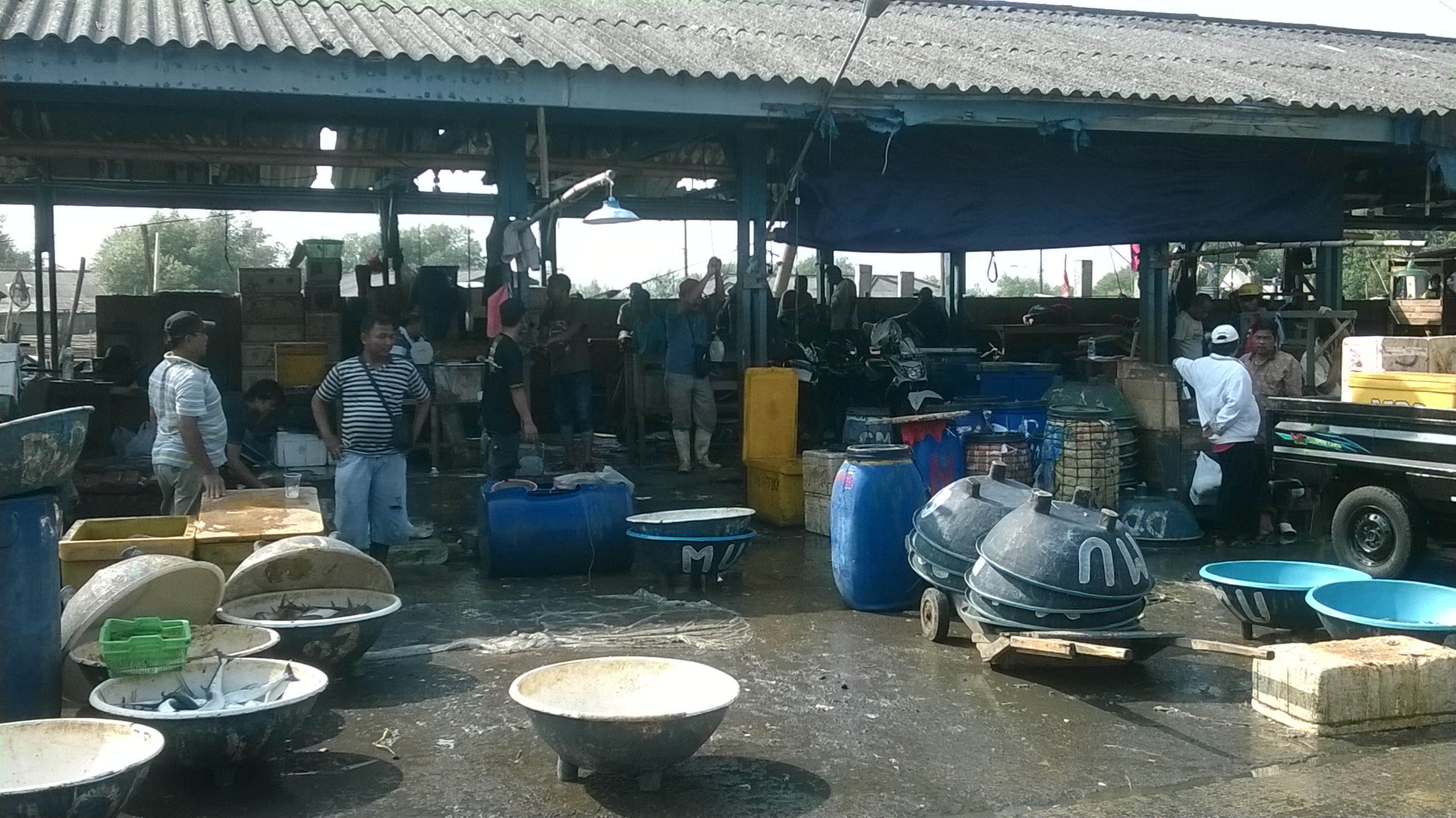 Alih-alih berangkat dari pelabuhan Muara Angke, kami berangkat dari Pelabuhan Muara Kamal. Pelabuhan Muara Kamal adalah pelabuhan kecil, tidak dikhususkan sebagai pelabuhan penumpang, tak heran fasilitasnya tidak sebagus di Angke. Kita bisa menjumpai pasar ikan di depan pelabuhan ini. Saya yang doyan ikan langsung jelalatan melihat ikan segar dan kerang hijau dijual murah. Sayangnya saya tidak mungkin membelinya, tidak ada yang masak soalnya 😛