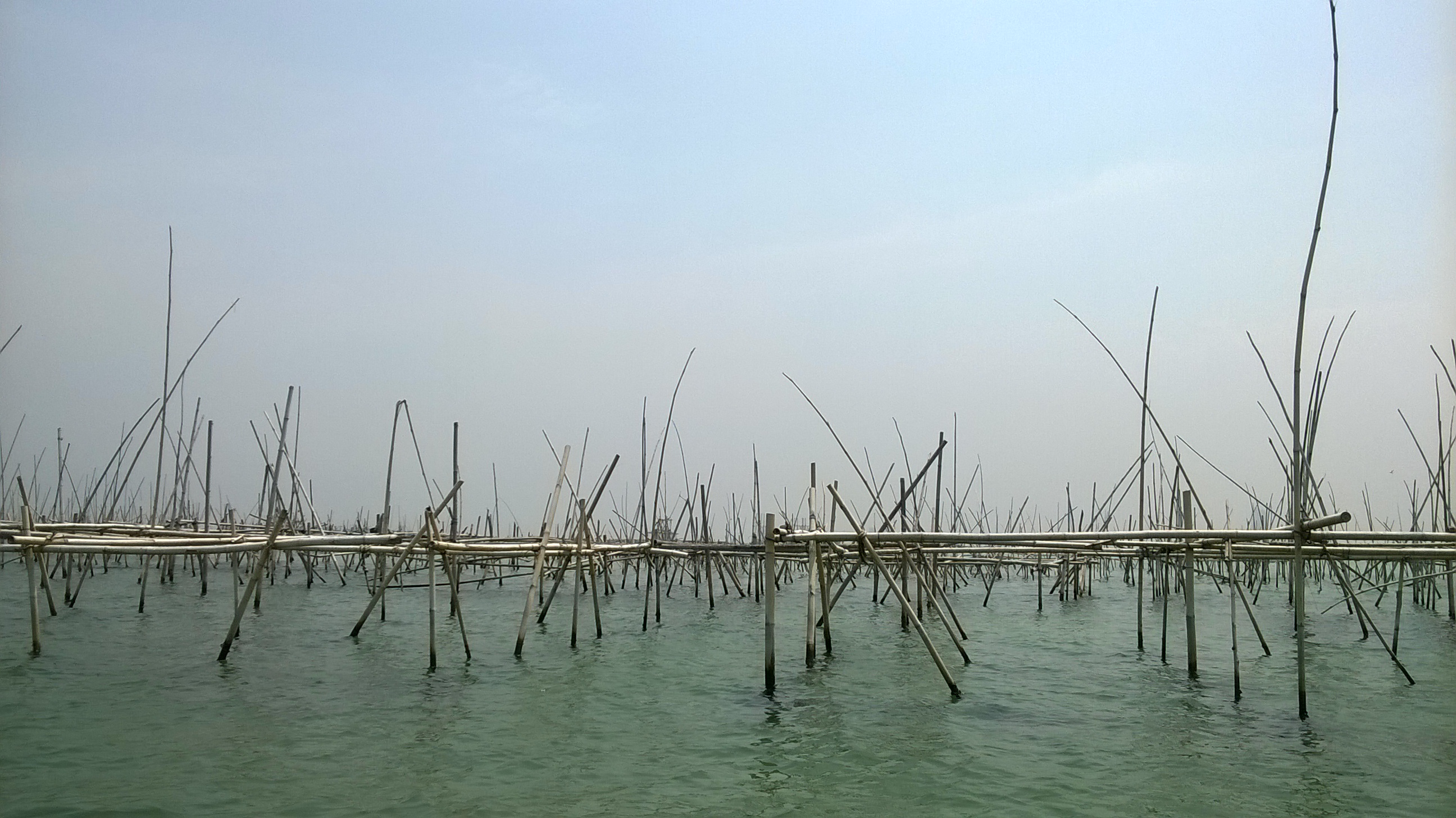 Saat perjalanan menuju Pulau Kelor, saya melihat sebuah pemandangan unik. Di sana-sini dipasang bambu-bambu yang ditancapkan di laut. Menurut ketua rombongan kami, bambu-bambu itu dipasang untuk berkumpulnya kerang hijau. Kerang hijau akan berkumpul di sekitar kaki-kaki bambu, lalu para petani akan memanen kerang hijau tersebut. Saya manggut-manggut, baru tau!