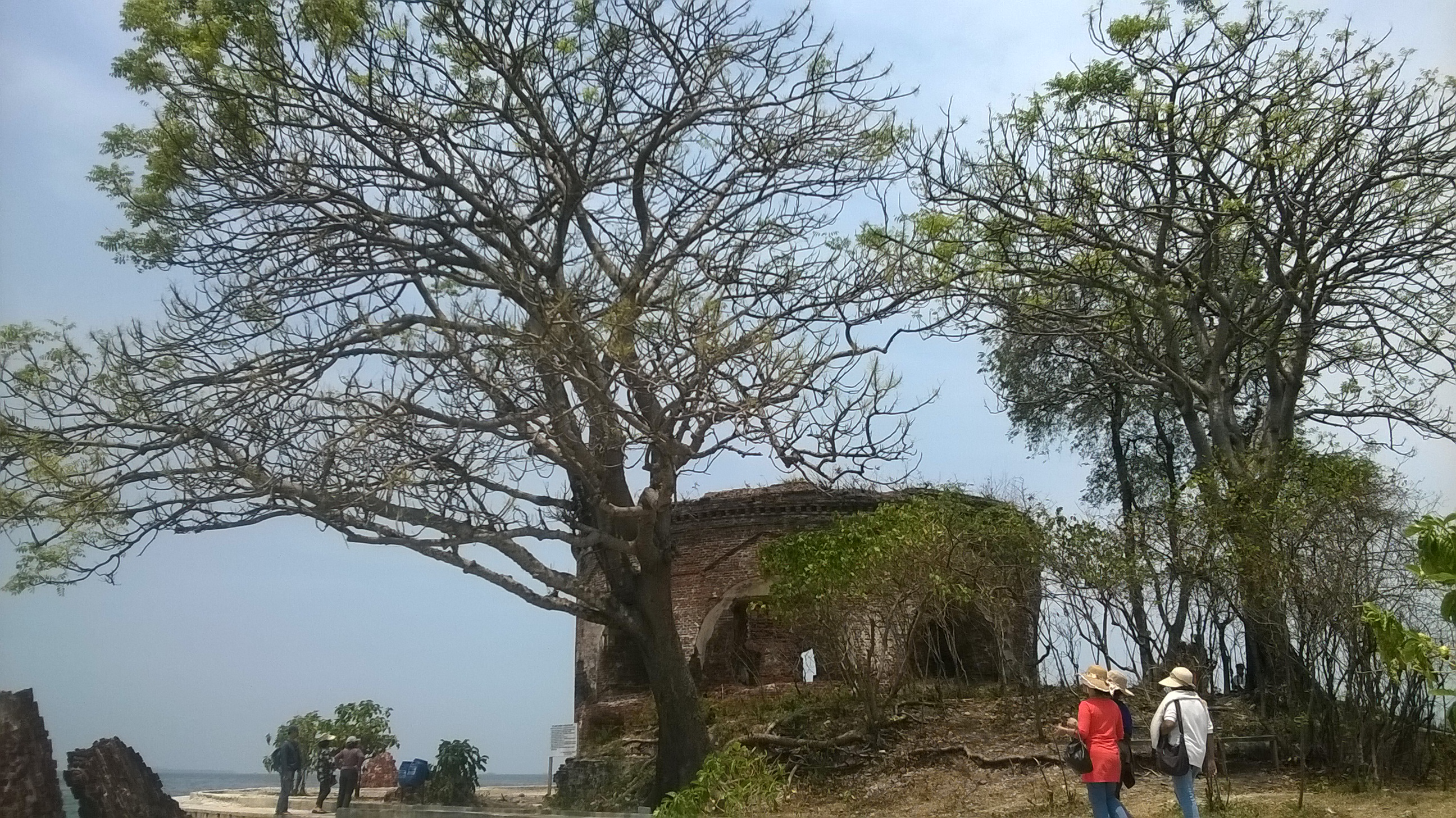 Tidak ada setengah jam, kapal kami sudah merapat di Pulau Kelor, perhentian pertama kami. Mendengar nama Kelor saya jadi ingat nama salah satu pulau juga: Alor. Mendengar nama Kelor juga akan mengingatkan kita pada daun kelor yang biasa dipergunakan untuk kiasan sesuatu yang tidak terlalu luas: sempit. Pulau ini memang sempit, bisa dikelilingi dengan jalan kaki kurang dari lima belas menit. Di pulau ini terdapat benteng peninggalan Belanda yang disebut sebagai Benteng Martello. Disebut Martello katanya karena bentuknya yang mirip martil.