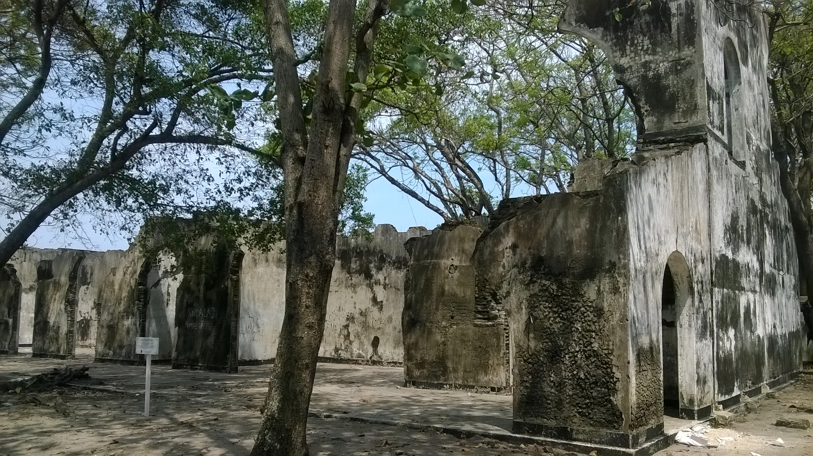 Ternyata memang benteng ini tidak dibuat main-main. Tebalnya saja sekitar 1,5 meter, terbuat dari batu bata yang katanya dibangun pada abad ke 17 sebagai pertahanan VOC dari serangan Portugis. Nama asli pulau Kelor adalah Pulau Kherkof, entah kenapa namanya berubah menjadi Kelor. Sebenarnya benteng ini cukup eksotis: indah, kuat, namun juga magis. Sayang sekali tidak terawat. Bahkan pengunjung ada yang dengan bebas naik-naik ke atap benteng. Benteng ini hancur pada tahun 1883 akibat tsunami saat Krakatau meletus (info dari sini)